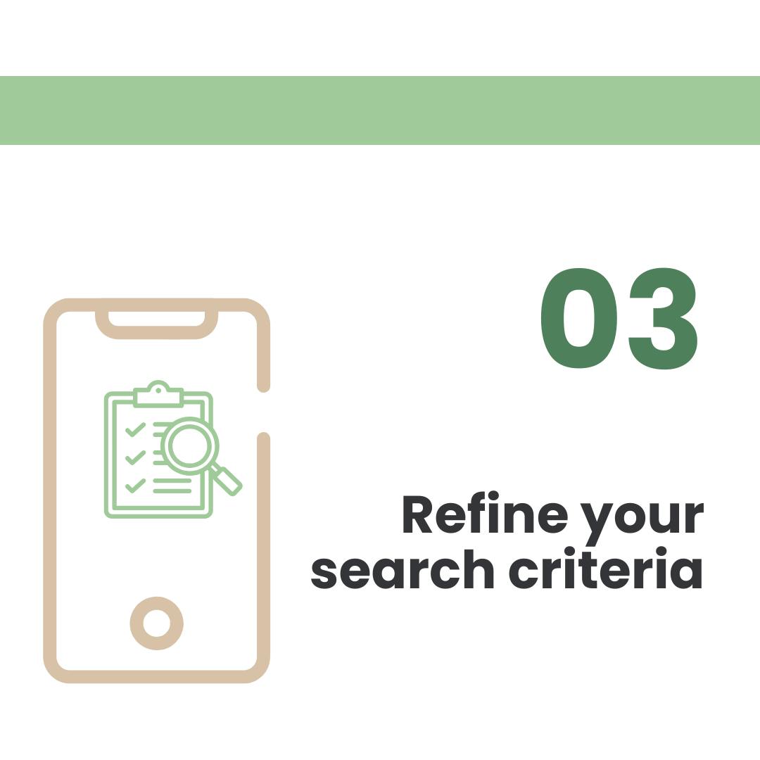 Use the filters to define your purchase or rental project, budget, property type, number of rooms, etc.